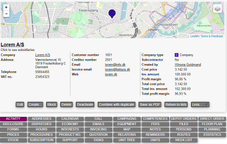 A blocked company will appear in the system with a red crossed out name. The company will still appear in the system and it is still possible to create and edit calls, tasks etc. (if there have been given permission to do so) concerning the company.