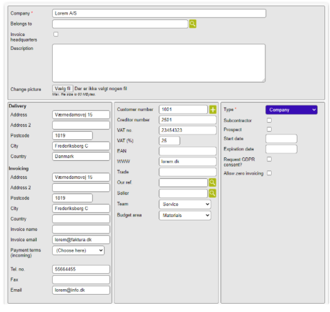 This function will save you some time when creating a new company in Microbizz. It is possible to load information about the company e.g. addresses etc. from an external CVR database.