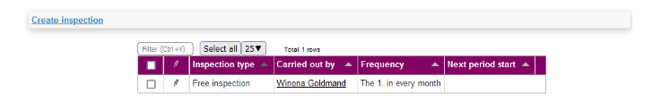 This tab shows you an overview of inspections for the chosen company. You can also create new inspections for the company