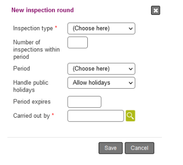 - Period: Choose the period of the inspection e.g. "only once" or "yearly"