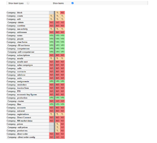 In this module, you can set the permissions for team types and teams by ticking their respective boxes. The screenshot below may not be up to date.