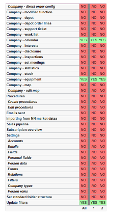 - Company - NN market data: Allows you to specify who has access to the menu NN Market data (special add-on for Danish solutions)