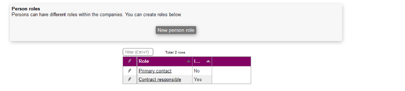You get an overview of individual roles by selecting Person roles from the SETTINGS menu.