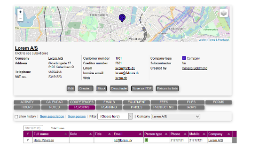 Choosing this option will let you create a new person right from this view, and with the company already selected as the persons association. See more about creating persons here.