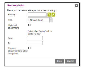 - Historical attachment: Choose this if you want to attach this person as a historical event. Meaning the person isn't attached to this company anymore but the fact that he/she was is relevant.