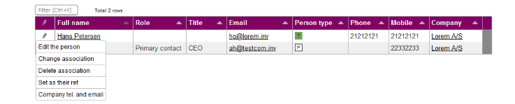 Sets the selected person as their ref, meaning the primary contact on the company card. This can be used later for invoicing purposes.