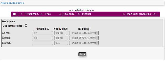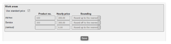 - Use standard price: If checked, you can choose use the standard prices for the various work areas which you may have declared in the Invoices module. Otherwise, you can declare the various prices for each work area. For more on the columns, please refer to basis prices