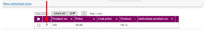 Editing an individual price happens on the same menu. Just click on the pencil to enter edit mode.