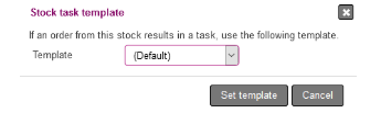 If an order of an item from a stock results in a task, you can choose a task template to create that task. To do so, click on "Set stock task template":