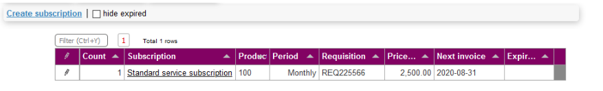 Subscriptions are used to manage periodical invoices that automatically run for as long as they are required. The subscriptions are invoiced nightly when they reach the next invoice date.