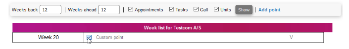 You can choose to look a certain number of weeks in the past and ahead of time, as well as specific objects, before pressing the "Show"-button.