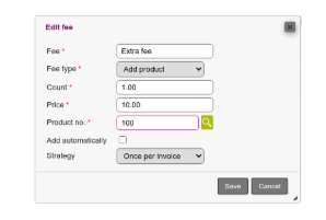 - Add automatically: If checked, the product is added automatically when the fee occurs