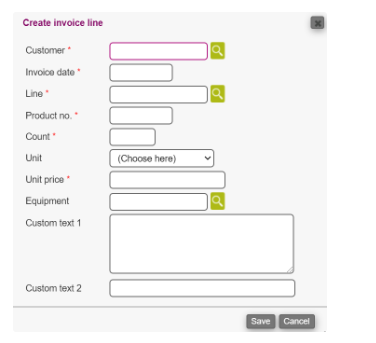 By clicking the Create invoice line button, you will be presented with the following screen: