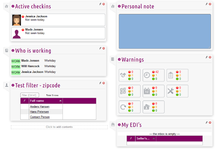 Here is an example of other types of content for the Microbizz start page. These could be associated with info boxes and are basically standardized content from the various Microbizz modules to be shown on the start page e.g. information from the work plan, from your calendar etc.