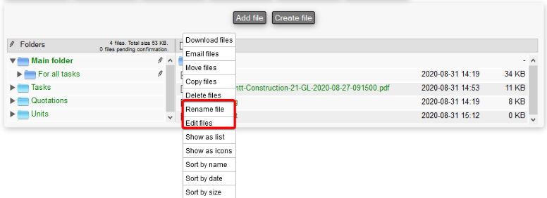 To edit existing files, we firstly need to select the ones we would like to interact with and then press the pencil above the right side.