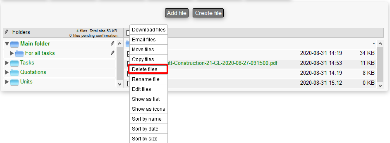- Copy files to another object: Create duplicates of the selected files, but save the duplicates on another task / company / equipment /etc.