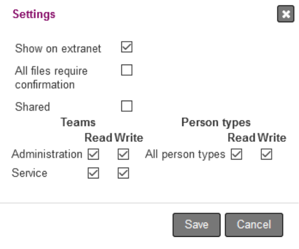- Read/write: Choose if internal teams members and or persons (on the extranet) can read and write the folder and it's content