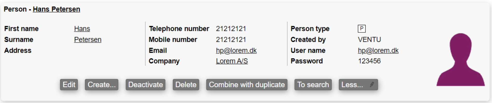 The person card is accessed either by the menu SEARCH or SEARCH WITH FILTER where you can search for all the persons in your system with or without filters, respectively.