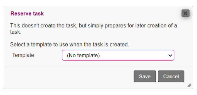 When choosing reserve task, the user indicates that a task should be created on this activity, but not immediately. This is done to prepare for the upcoming work, but the user doesn't wish to create the tasks yet.
