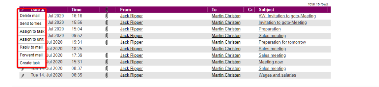- Send to files: If there are attachments to the mail, they can be added to the files folder for this specific object