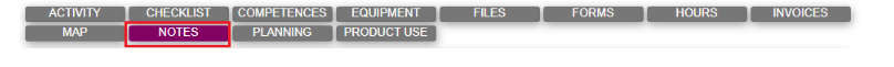 The purpose of the Notes tab is to record and communicate internally between users and externally with persons either pr. mail or on objects on the Extranet.