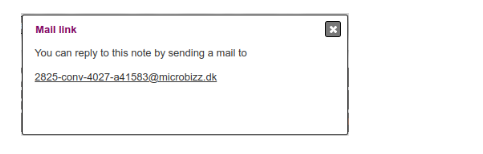 The mail link can be used to send mails Microbizz, the mails will then appear as notes: