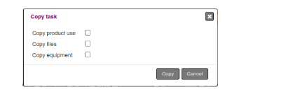 Make a copy for the selected tasks. You wil be asked which additional data to copy (files, product use, equipment attachments).