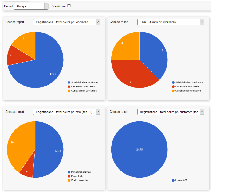 The statistics/reports tab has the single purpose of showing mini reports regarding different type of data.