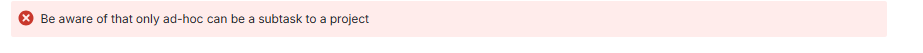 Be aware of that only ad-hoc can be a subtask to a project