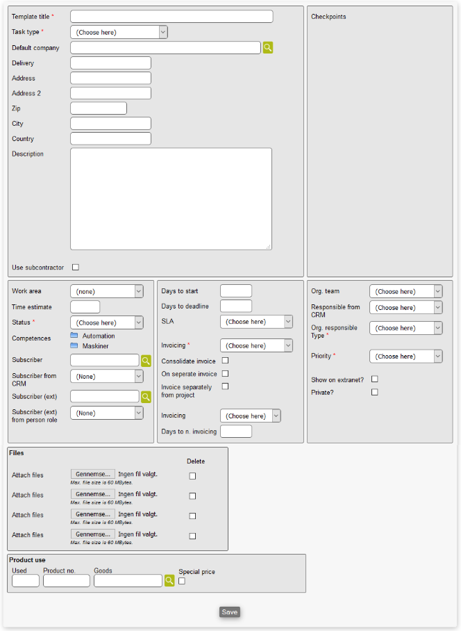 Task templates are used to make it easier to create tasks and do it correctly, as templates usually are created from the backend by teamleaders or administrators who can then standardize what information the tasks should contain. A template contains most of the information that you normally fill in when you create a task.