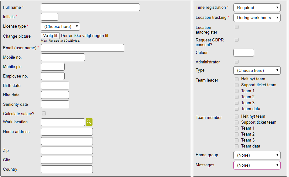 • Calculate salary?: Use this checkmark to decide if the user should be included in the salary calculation