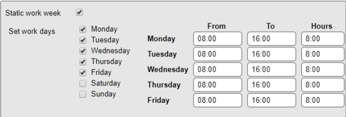 When creating a user, you can add a workweek. This is used to for different purposes in Microbizz. For example when to plan a task, or for salary purposes. You can choose to ignore this section by not activating it.