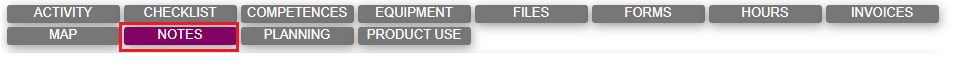 The purpose of the Notes tab is to record and communicate internally between users and externally with persons either pr. mail or on objects on the Extranet.