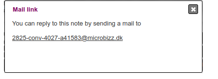 The mail link can be used to send mails Microbizz, the mails will then appear as notes: